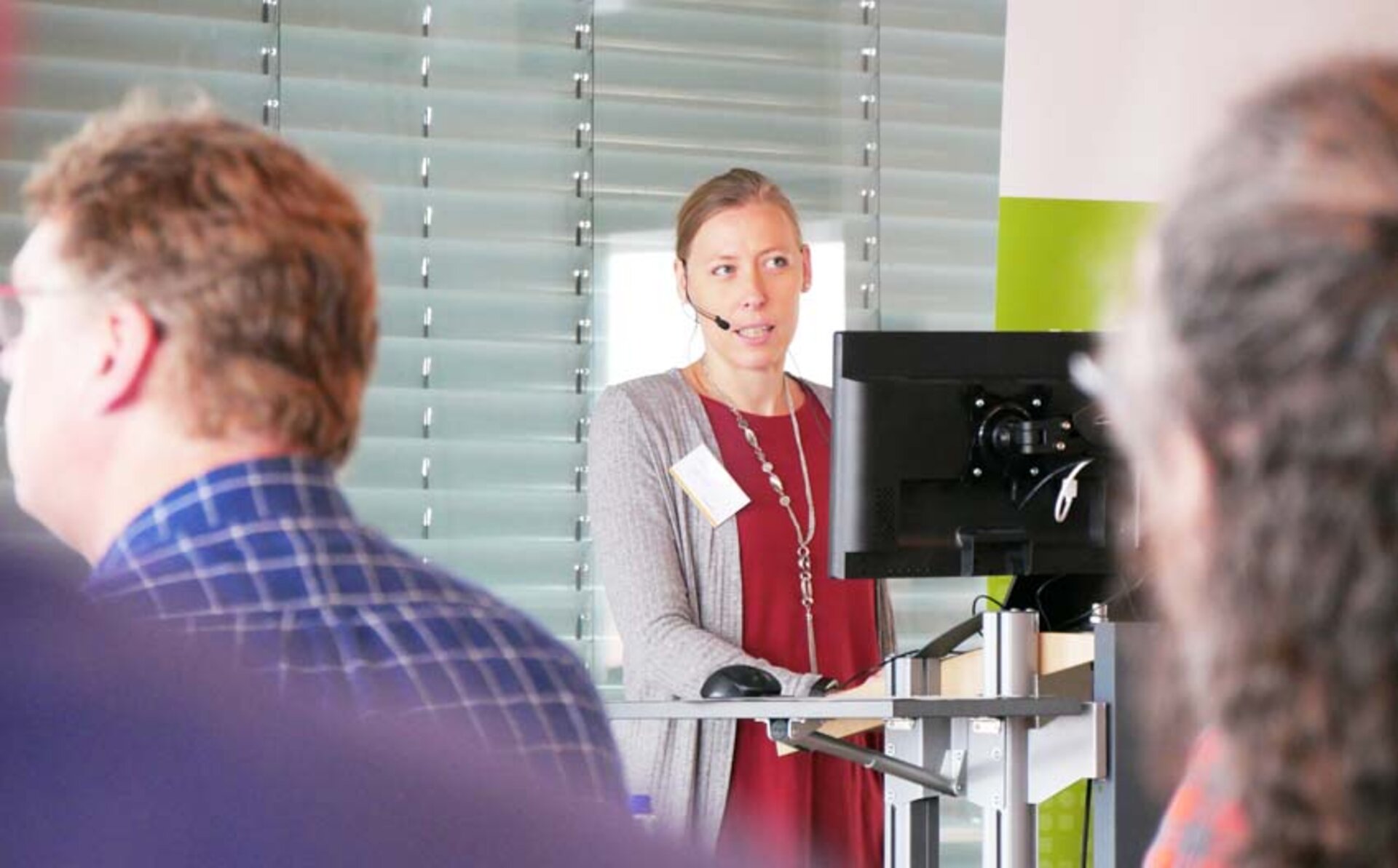 An die aktuelle Gesetzeslage knüpfte inhaltlich der Vortrag von Johanna Strobl von der illwerke vkw AG an, in dem sie die Anforderungen der neuen Corporate Sustainability Reporting Directive vorstellte und passend dazu anschließend den Weg zur Erstellung einer „Treibhausgasbilanzierung“ veranschaulichte.